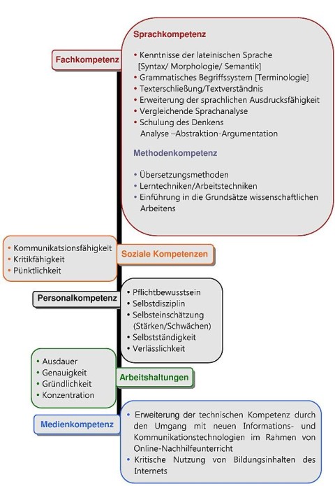 Ihr Kind erwirbt auch im Latein-Nachhilfeunterricht durch das Einüben grundlegender Verfahrensweisen und die Formen ihrer Vermittlung Kompetenzen in mehrfacher Hinsicht: